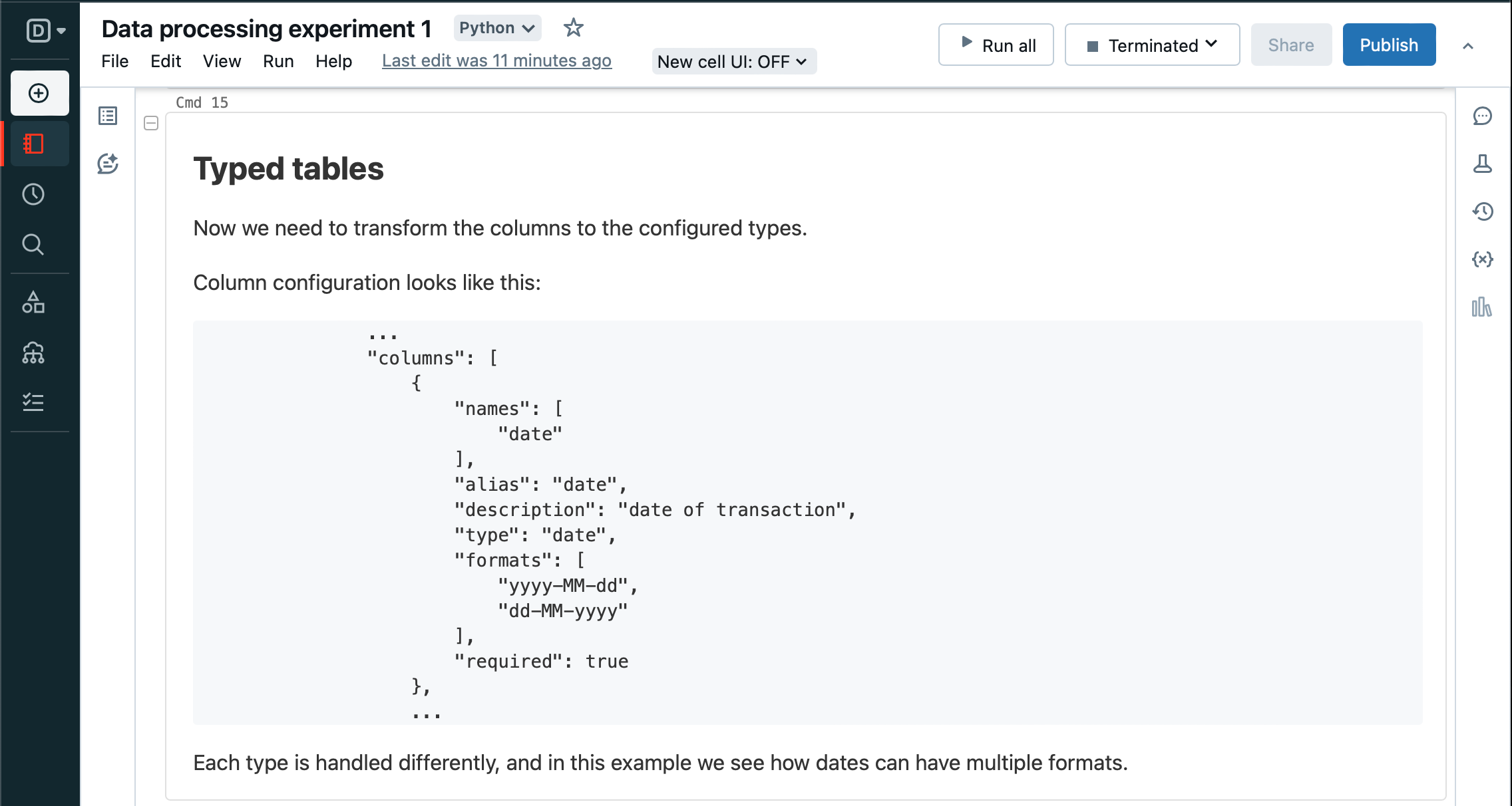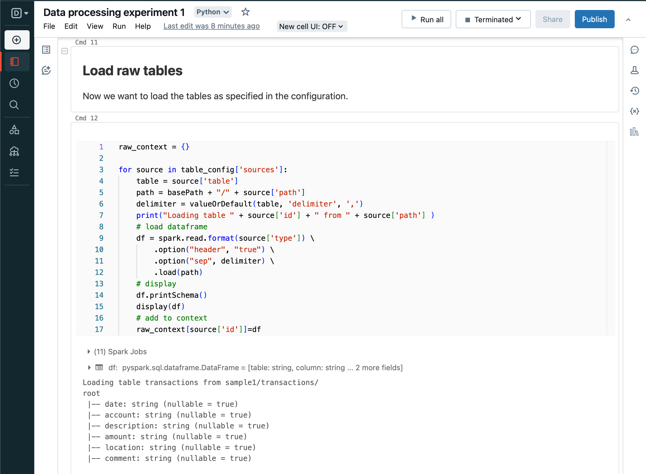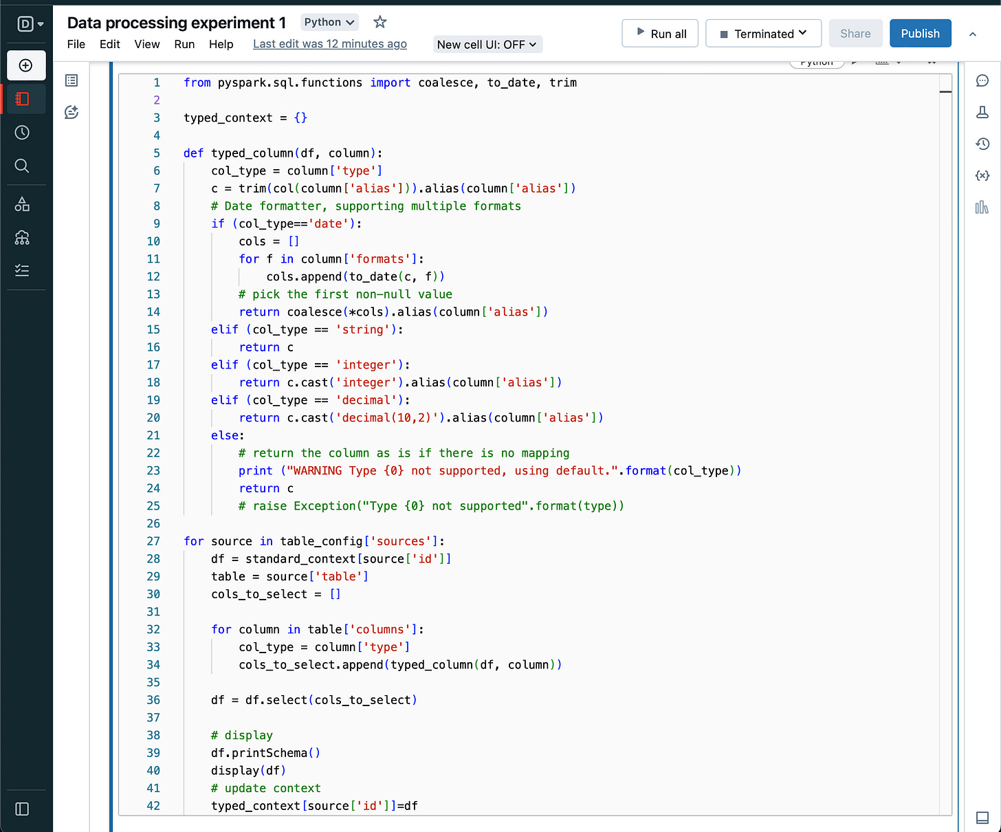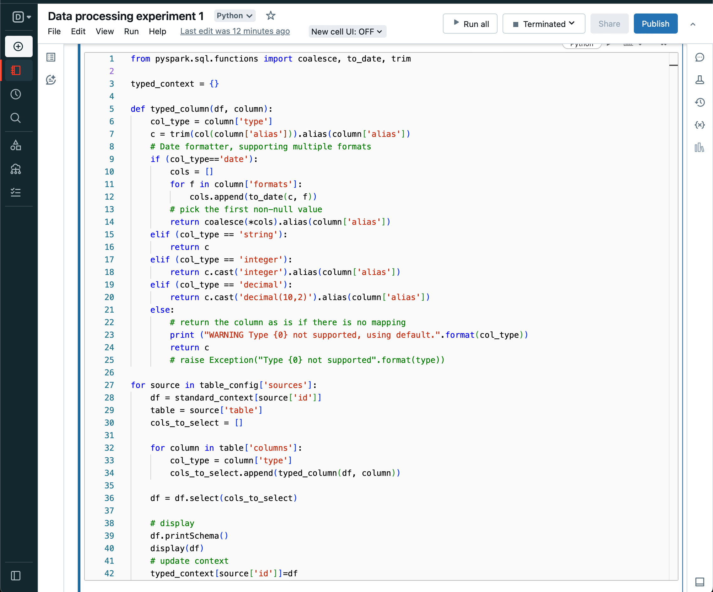Here, I've gone from loading raw data using configuration to a typed dataset in a DataBricks notebook. There is still much to do to get it to parity with the functionality of the Kotlin codebase, but using python without any Object Oriented design wouldn't be satisfying so I'm going to leave it here, and try a different approach later.
