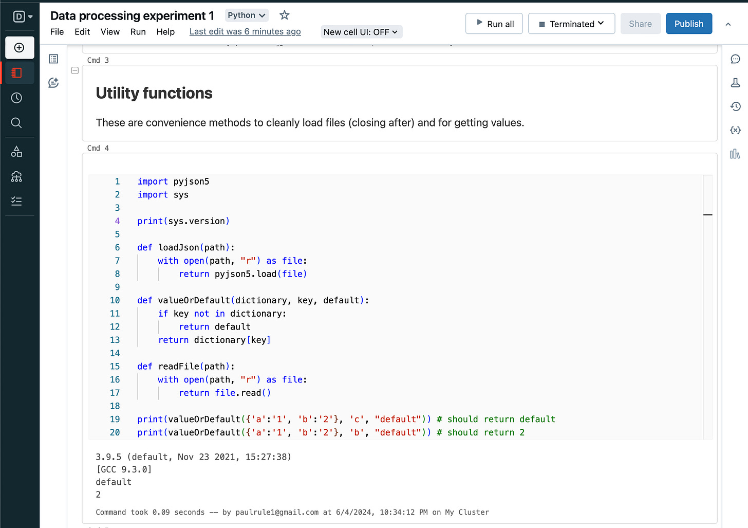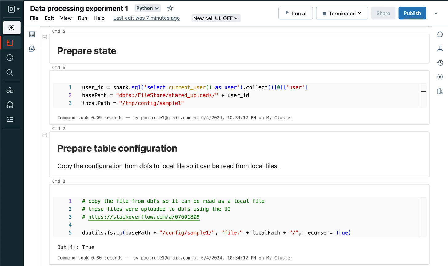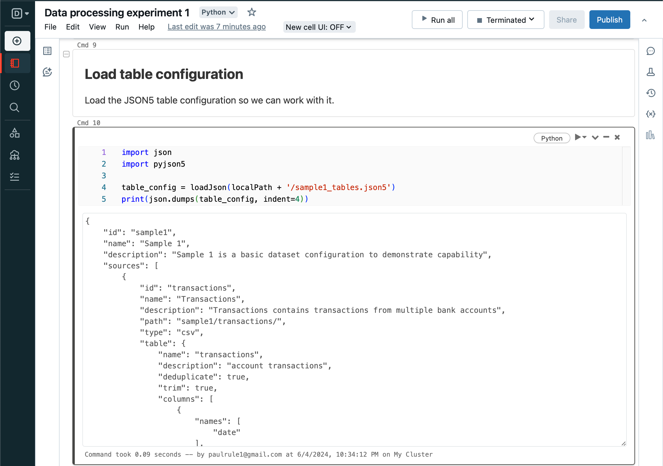 To get started with DataBricks I signed up to the community edition. This has some limitations but it'll suit me for this experiment. I’ve exported the notebook source code to Data processing experiment 1.py.