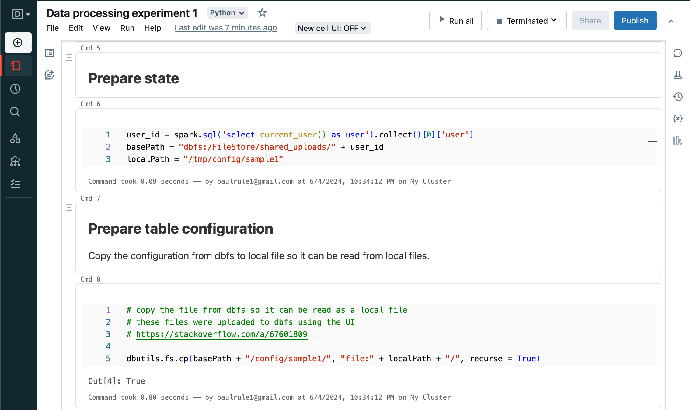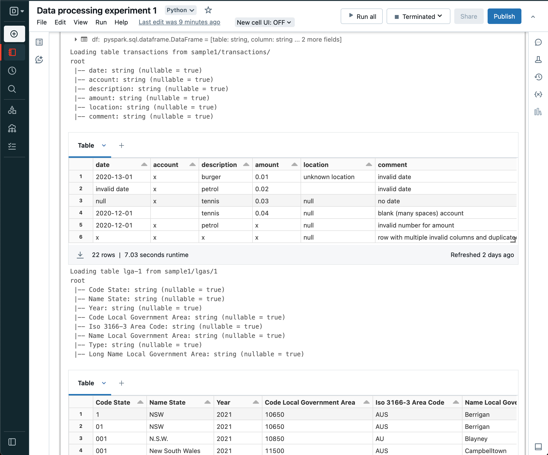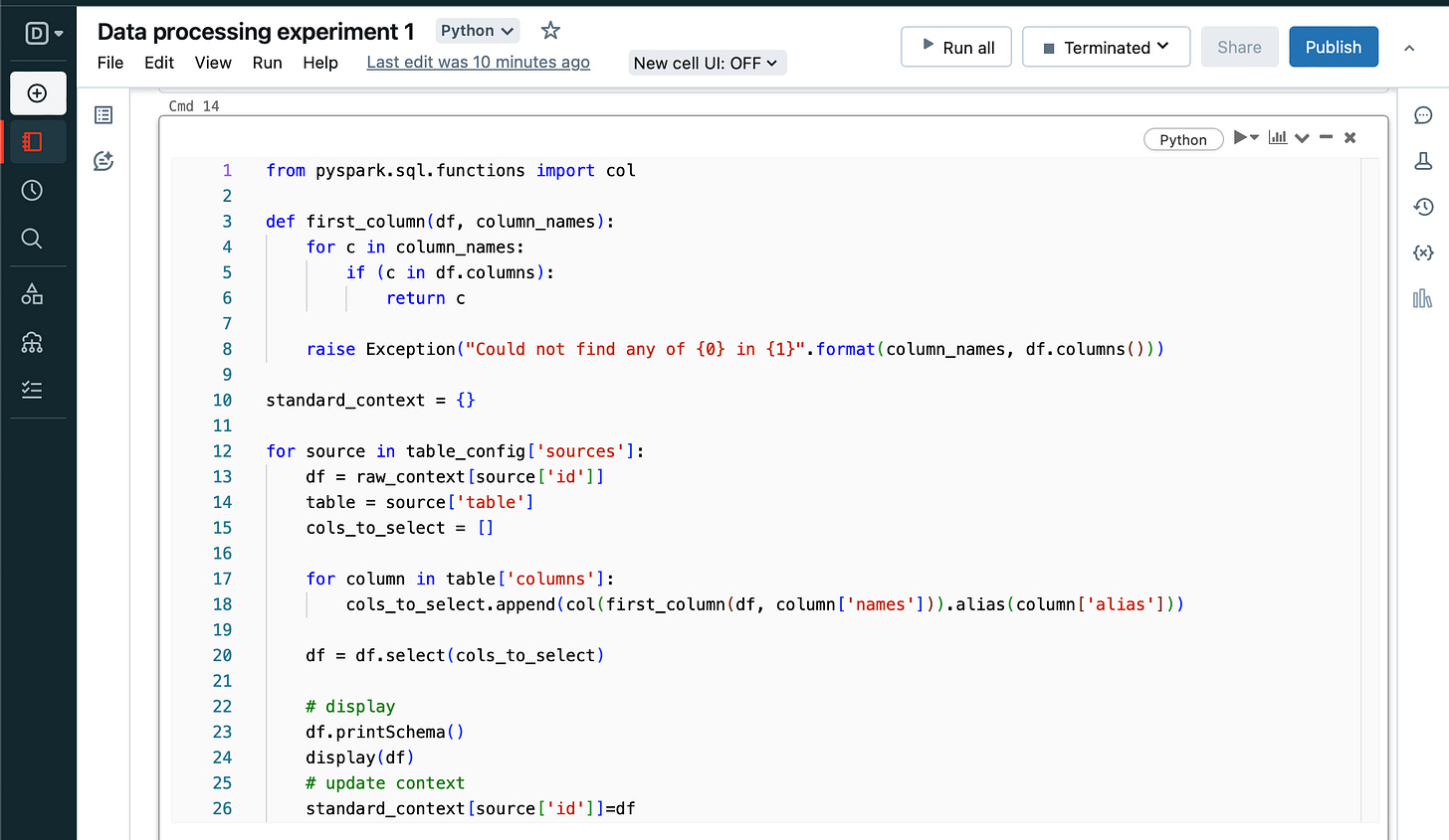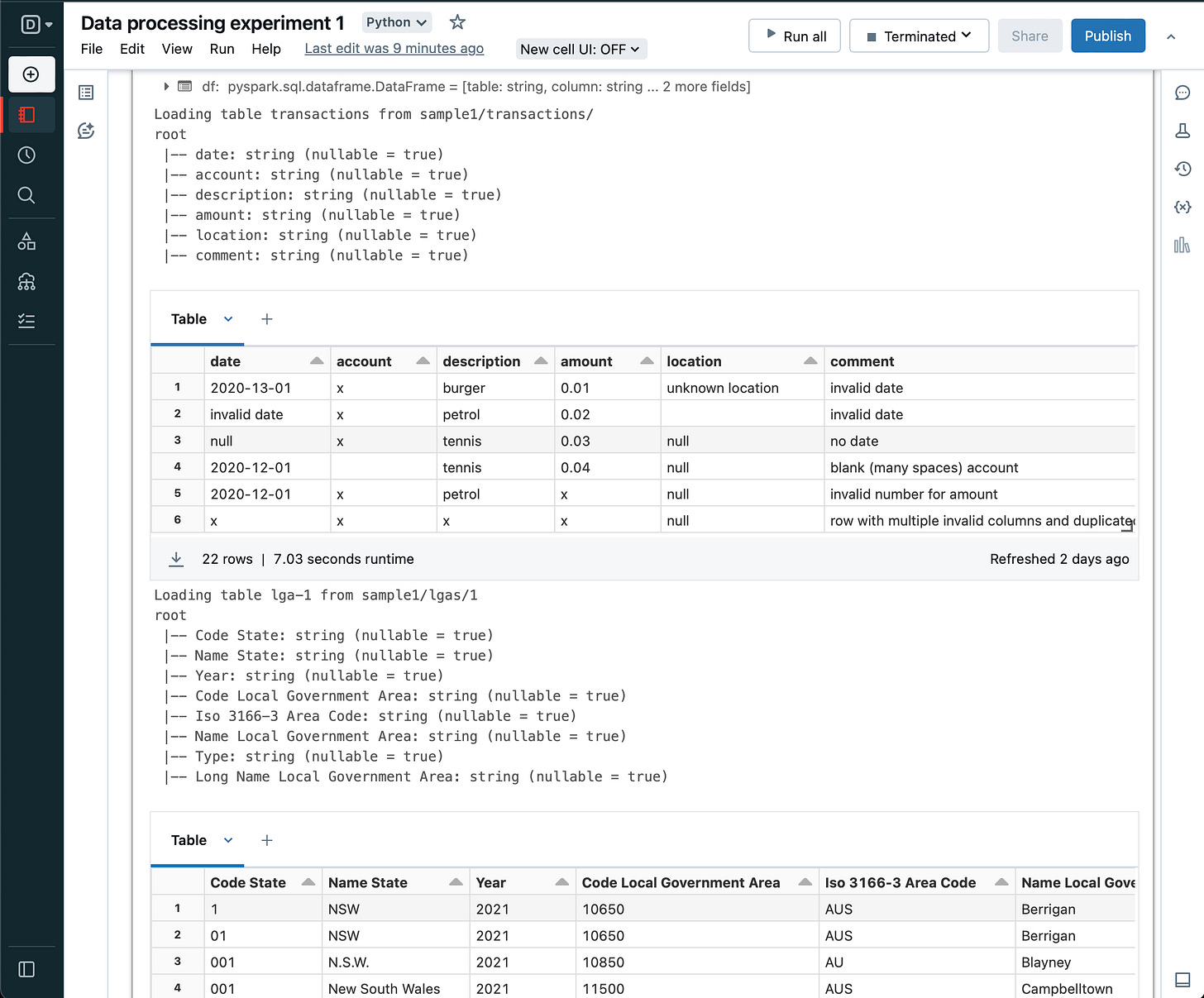 To get started with DataBricks I signed up to the community edition. This has some limitations but it'll suit me for this experiment. I’ve exported the notebook source code to Data processing experiment 1.py.