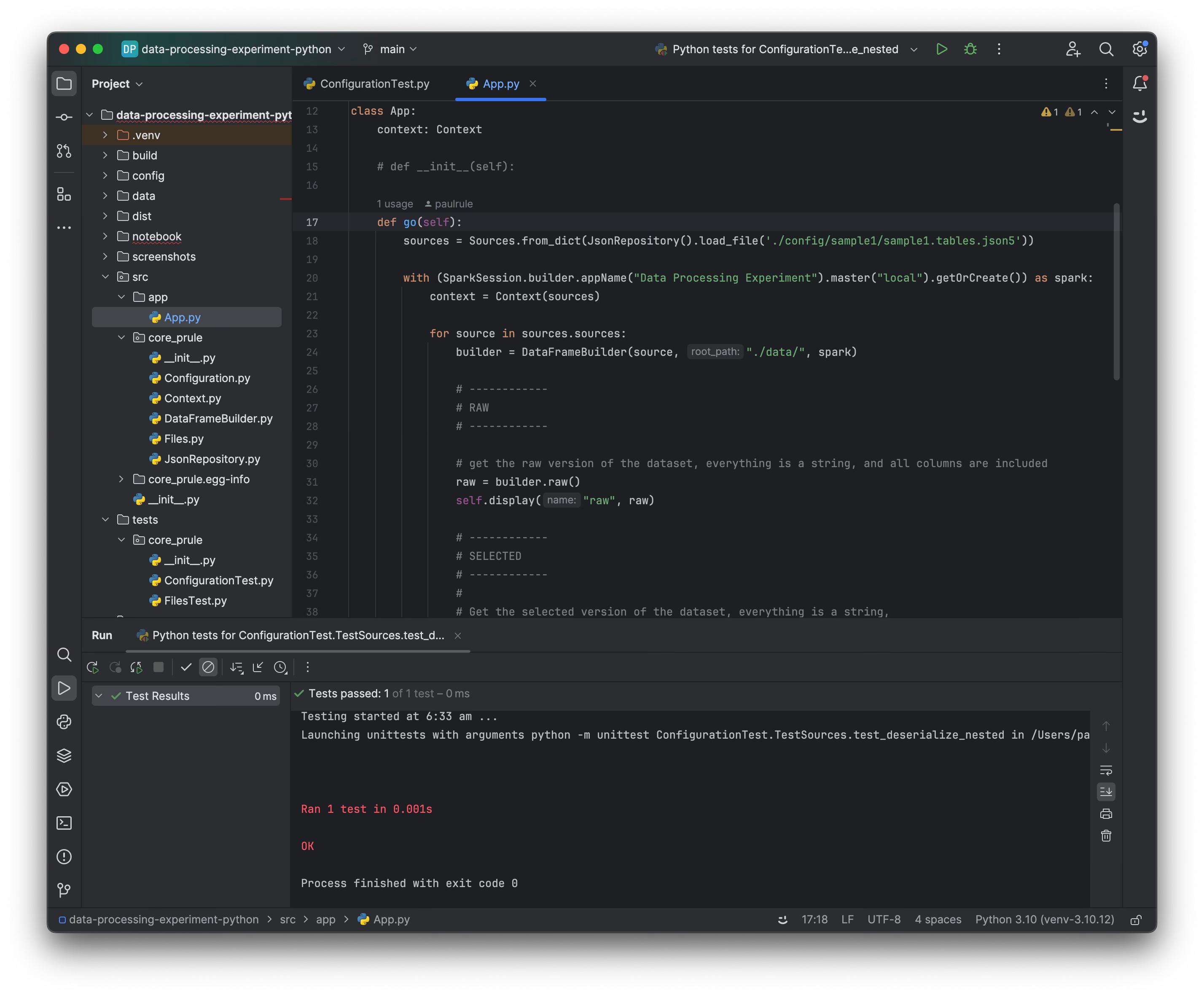 with (SparkSession.builder.appName("Data Processing Experiment").master("local").getOrCreate()) as spark: