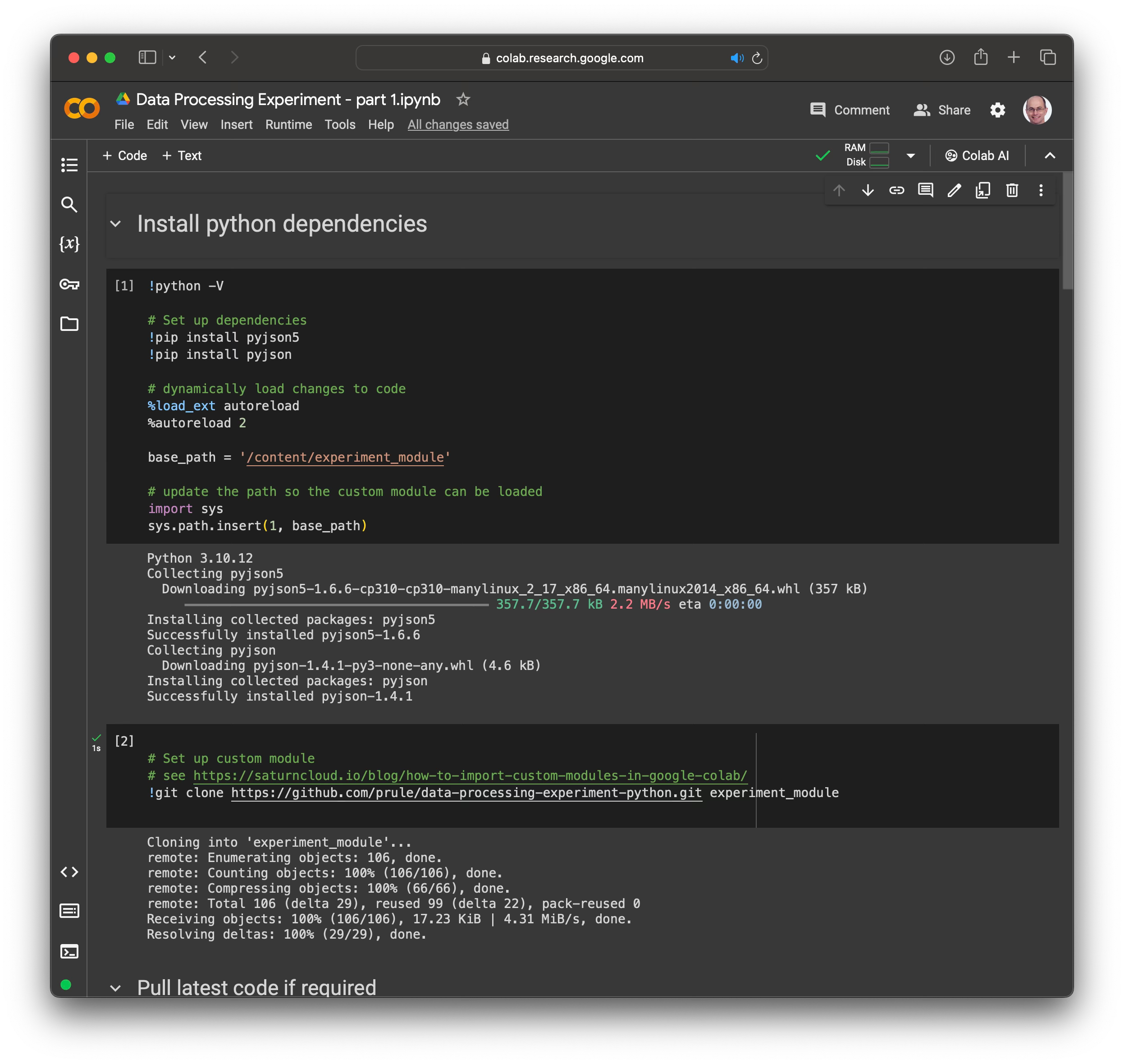 After playing with DataBricks notebooks, I thought I'd play with Google Colab notebooks. This time I want to see if I can develop the python code as a module, and then use that from the notebook.