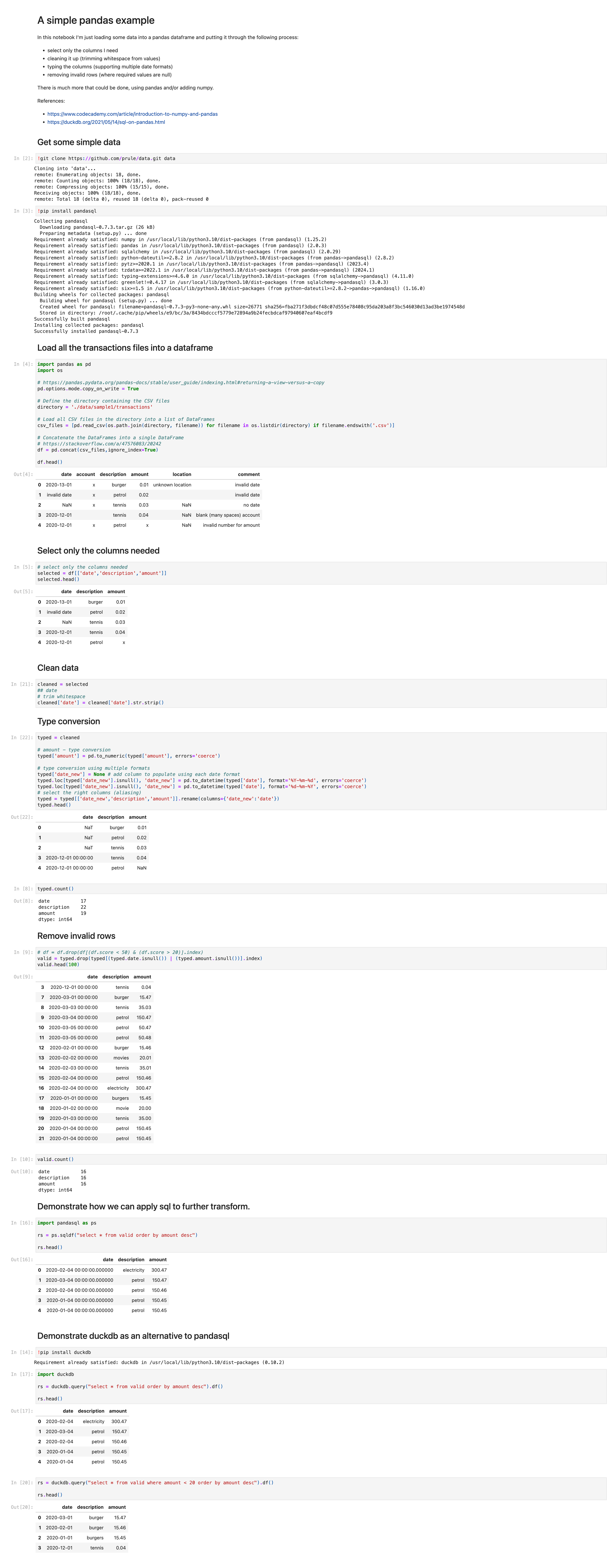 I've covered some basic uses cases here - showing how notebooks with pandas can be used to manipulate data.